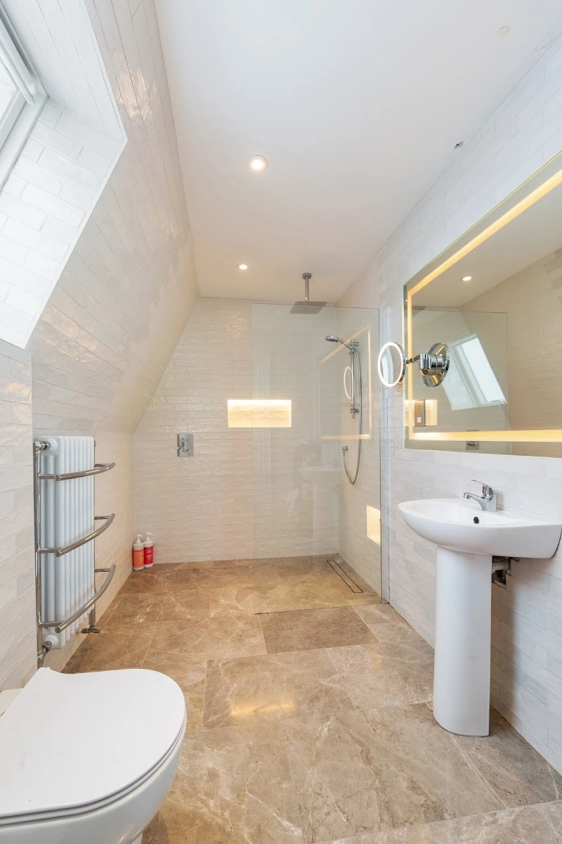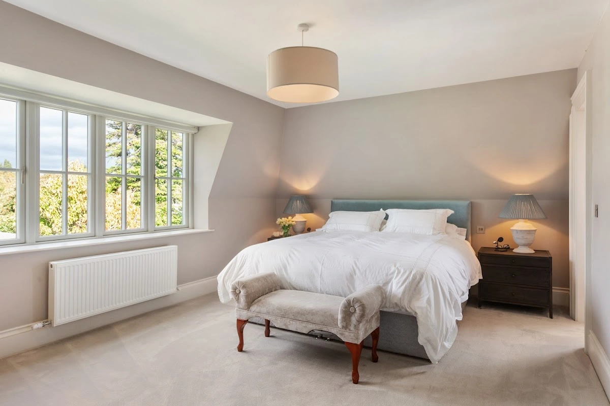 Upstairs, a bright and spacious landing with a gallery-style view over the hallway below creates a wonderful sense of light and openness. There are four generously sized bedrooms, including a magnificent principal suite with walk-in wardrobe and en suite bathroom. A large, stylish family bathroom completes the accommodation on this level.