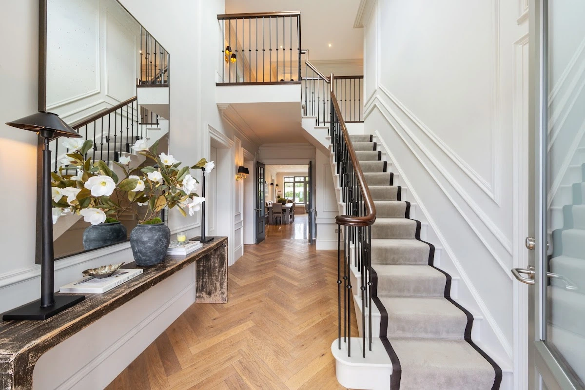 From the moment you step inside, it is immediately clear that this is a home of rare distinction. The entrance hallway is truly impressive, with soaring ceilings and a striking staircase as its centrepiece. To the rear lies a superb kitchen/dining area—the true heart of the home—opening to a welcoming family room. A practical and invaluable pantry/utility room is located just off the kitchen, while to the front there is a refined living room and a separate study, ideal for remote working.